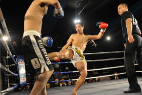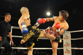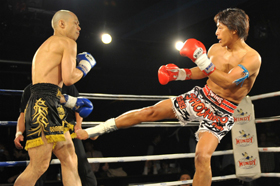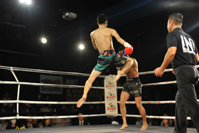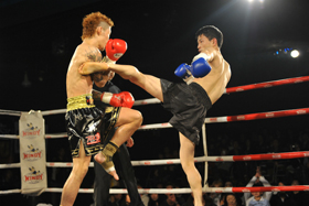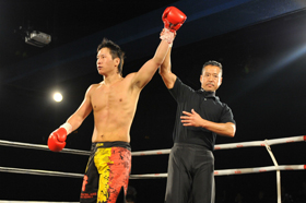 ゴングと共に日野がYoshinobuをコーナーに詰めてパンチでラッシュ!Yoshinobuからダウンを奪うと、日野はコーナー際で右ローを打ち、ラッシュを仕掛けようとしたところにレフェリーが割って入り、日野が43秒という今大会最短記録でKO勝利を収めた。