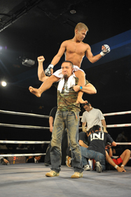 開始早々、飯尾の突進に押され倒れ込む三宅。そこへ飯尾がマウントポジションを取り、パンチを連打!レフェリーが割って入り、レフェリーストップとなった。89秒の秒殺KOで飯尾が圧勝した。